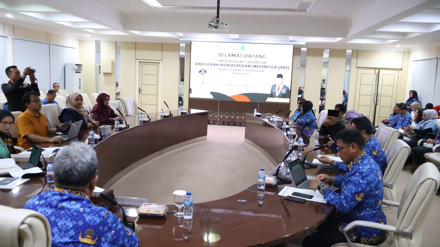 MUBA, PERSADAEKSPRES.COM- Pemerintah Kabupaten Musi Banyuasin menyambut kedatangan Tim Verifikasi Lapangan Anugerah Kebudayaan Indonesia (AKI) ke Kabupaten Muba. Dalam kesempatan tersebut, Pj Bupati Muba H Sandi Fahlepi melalui Plt Asisten Bidang Perekonomian dan Pembangunan Setda Muba Erdiansyah SP MSi, didampingi Kepala Perangkat Daerah menyambut langsung kedatangannya di Ruang Rapat Serasan Sekate, Kamis (17/10/2024).