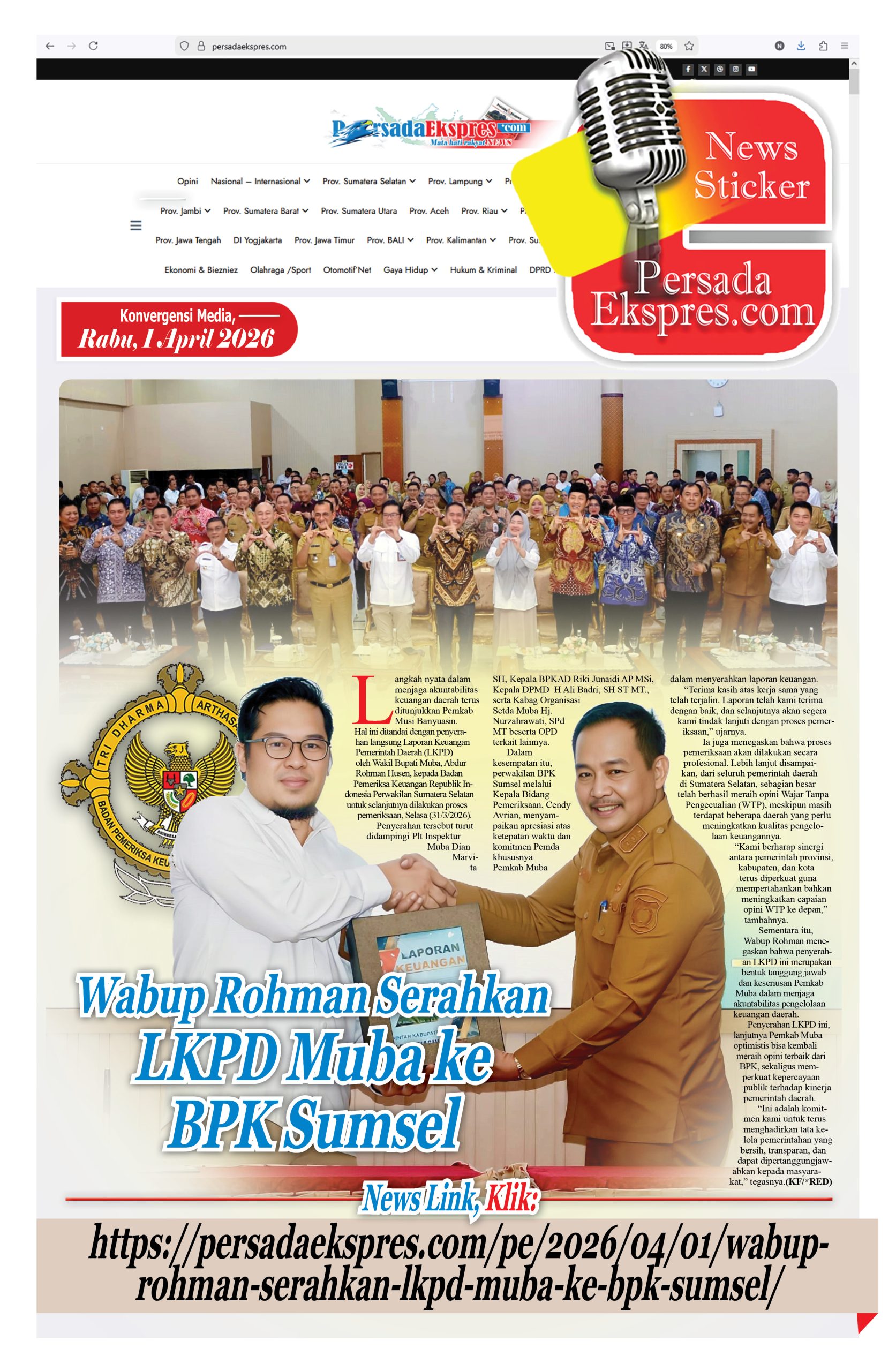 PALEMBANG, PERSADAEKSPRES.COM– Langkah nyata dalam menjaga akuntabilitas keuangan daerah terus ditunjukkan Pemkab Musi Banyuasin. Hal…