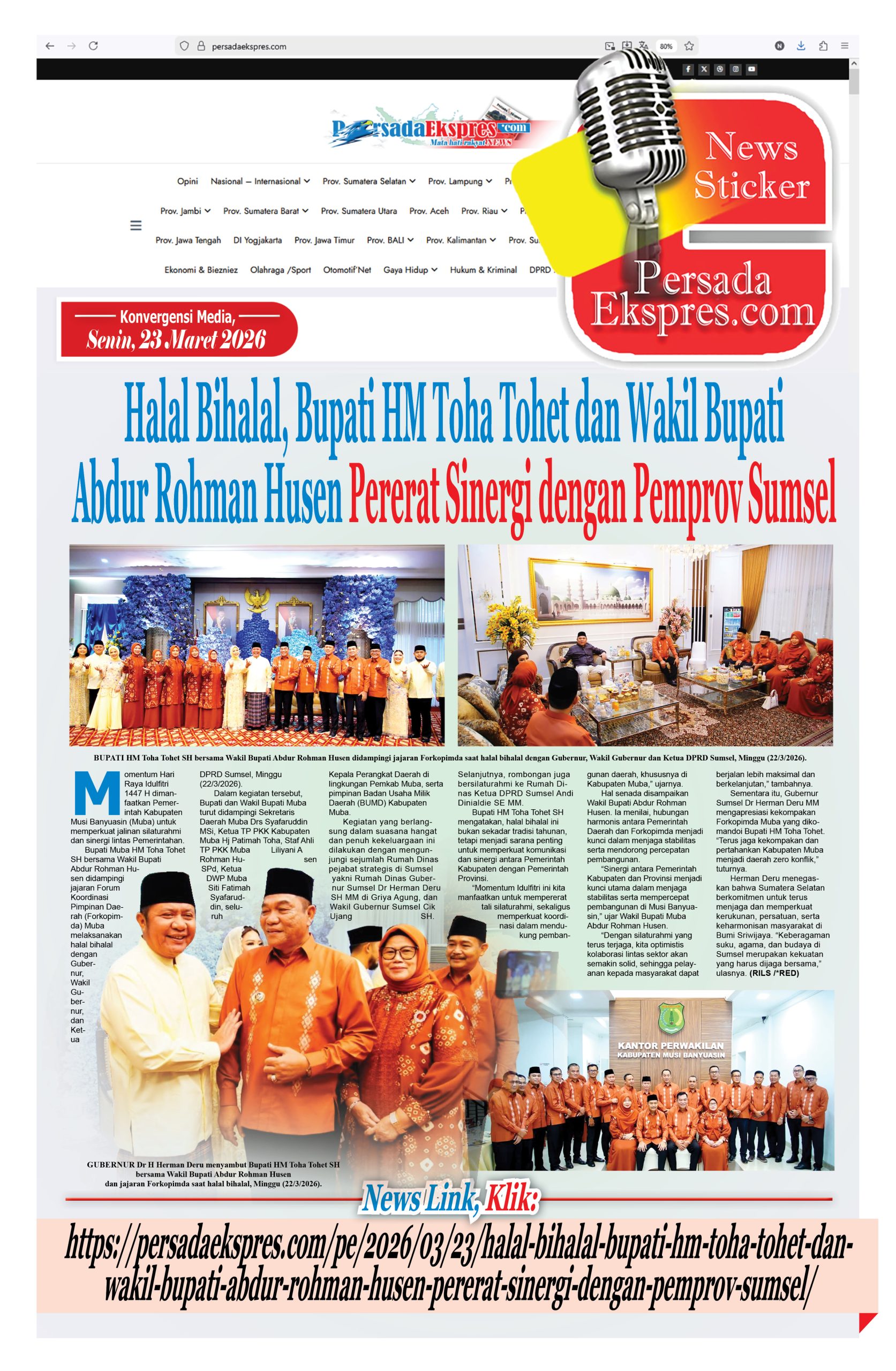 PALEMBANG, PERSADAEKSPRES.COM- Momentum Hari Raya Idulfitri 1447 H dimanfaatkan Pemerintah Kabupaten Musi Banyuasin (Muba) untuk…